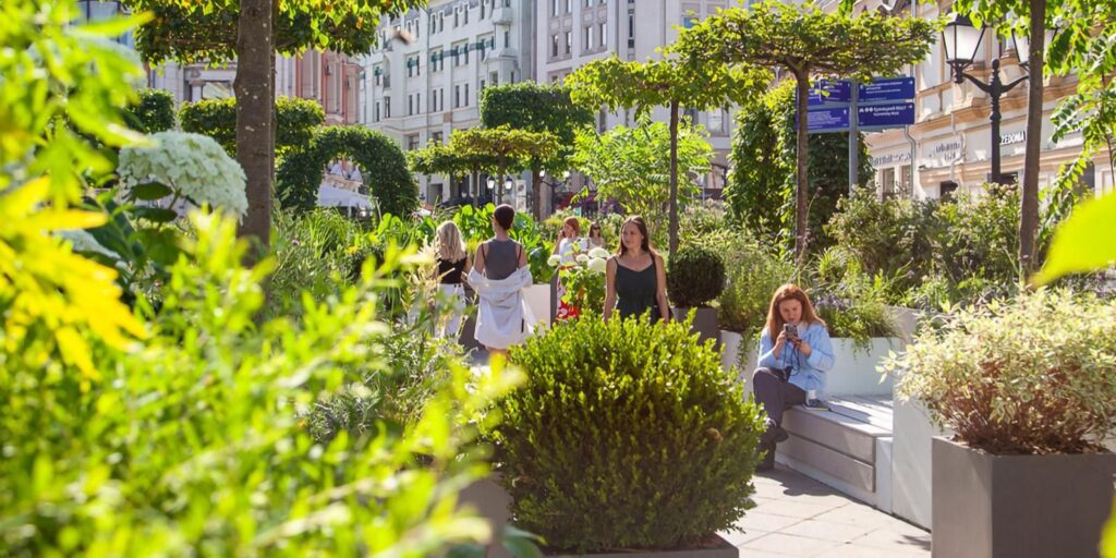 Центральные пешеходные улицы превратятся в яркий прогулочный маршрут. Например, в июне в Камергерском переулке появятся настоящие лимонные деревья, на Кузнецком Мосту — многоуровневое ландшафтное решение с водоемом и липами с кронами необычной формы. Полюбоваться ярким декором с цветочными акцентами можно будет и на набережных столицы.