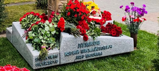 Могила Ю.М. Лужкова расположена на центральной аллее Новодевичьего кладбища. Юрий Лужков скончался 10 декабря 2019 года в возрасте 83 лет. Он возглавлял правительство столицы на протяжении 18 лет, внес значительный вклад в становление российской государственности и развитие Москвы. Указ об увековечении памяти Ю.М. Лужкова был подписан Президентом России В.В. Путиным 13 февраля 2020 г.