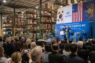 На церемонии, посвященной завершению строительства завода, состоявшейся 16 июля (по местному времени), вице-председатель Kolmar Group Юн Сан Хён (Yoon Sang Hyun) рассказал о глобальных амбициях компании. «США — это место, где столетие назад начался путь Kolmar. Этот второй завод — не просто производственная площадка, а отправная точка для новой концепции сотрудничества и роста. Вместе с партнерами по разносторонней цепочке создания стоимости мы выстроим инновационную экосистему, которая станет основой крупнейшего центра по производству косметики в Северной Америке», — сказал он.