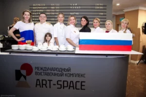 Работа велась под руководством звездных кондитеров Максима Синицкого и Марины Синицкой. Десерты выполнены в цветах российского триколора — символа силы, единства и национальной гордости.