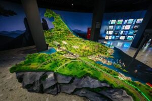 Композиция макета объединяет ключевые достопримечательности и символы Приморского края, включая природные ландшафты, знаковые архитектурные объекты, туристические маршруты и важные инфраструктурные точки региона. В единой пространственной модели представлены основные территории и культурные ориентиры края, позволяющие посетителям увидеть регион как целостную систему.